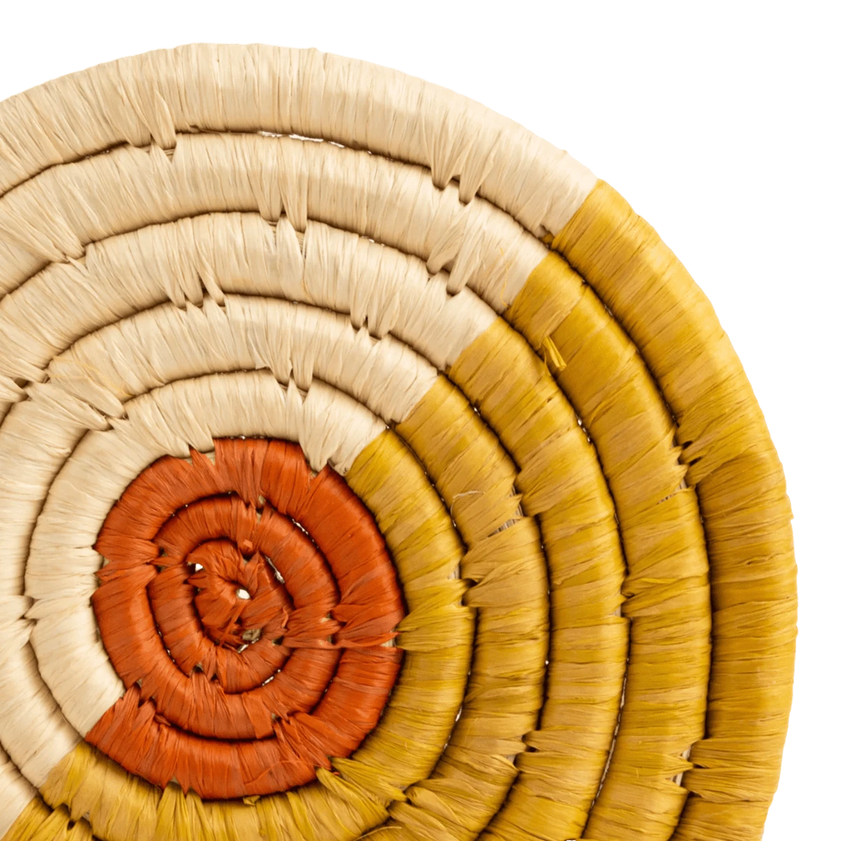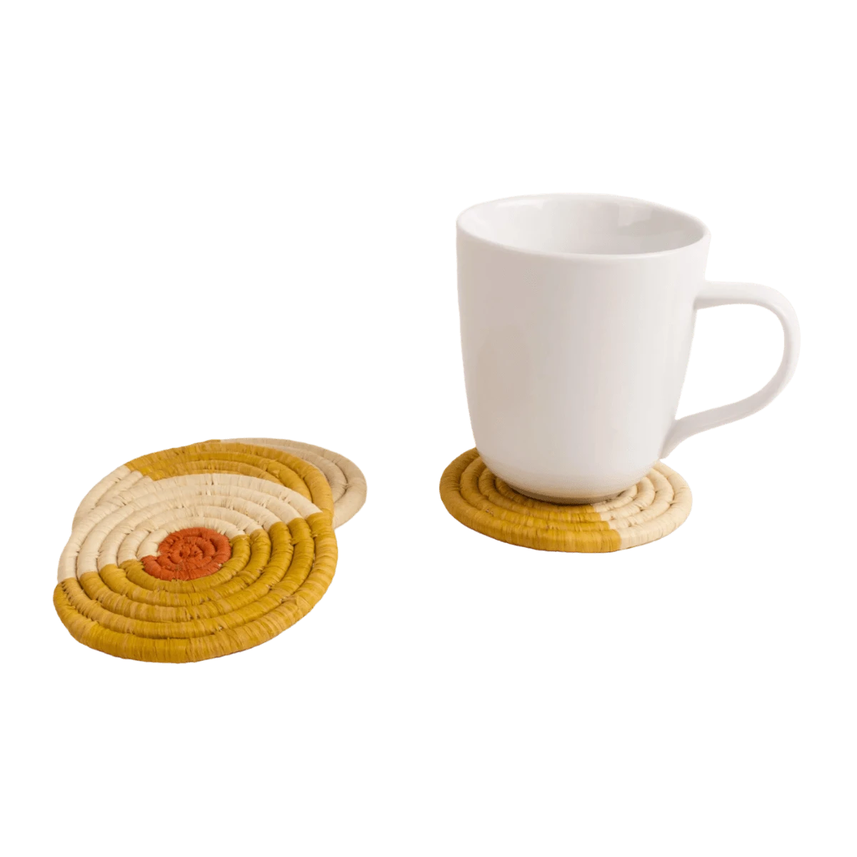 Intricately crafted with timeless tradition, this carefully dyed sisal fiber and sweet grass coaster set makes a bold and exciting statement piece.