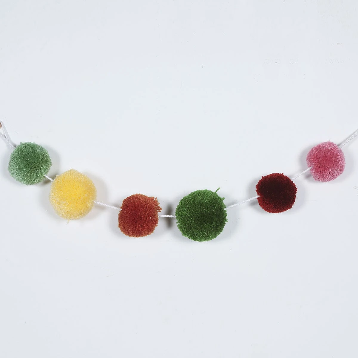 - Dimensions: Garland is 24″ long / pom poms are 2″ & 4″