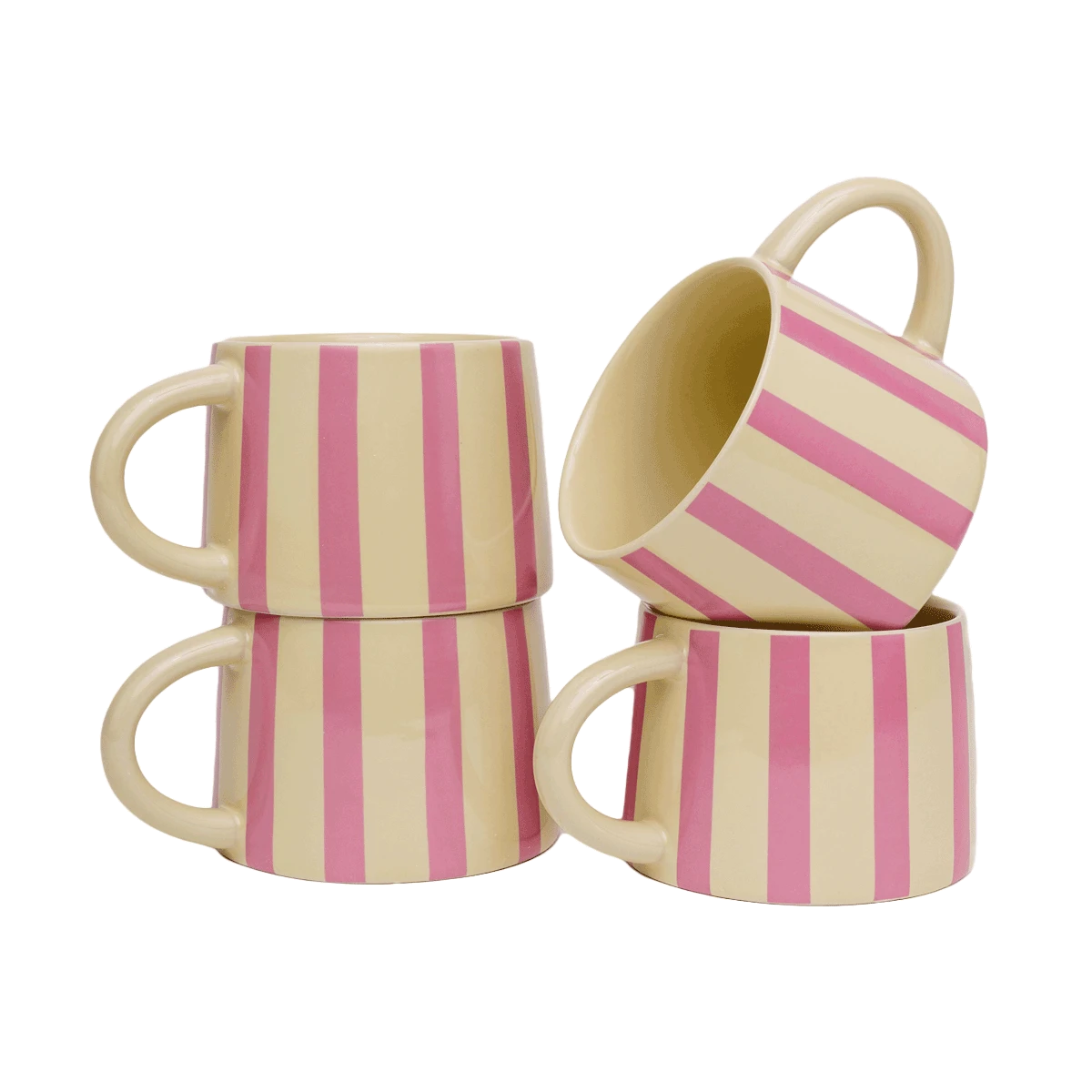 The glass is always half full with these colorful ceramic striped mugs! Whether enjoying your morning coffee or enjoying tea with friends, these perfect lil’ ceramic mugs designed by Justina Blakeney® exclusively for Jungalow® will add a fresh splash of color to your collection!