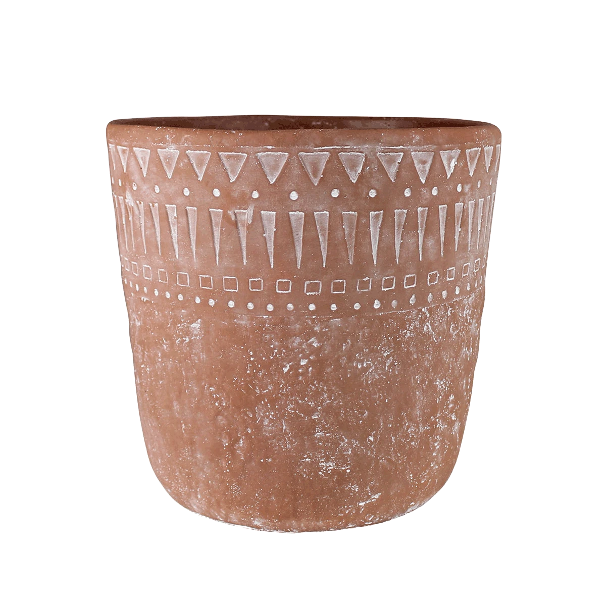 A cement planter from your dreams finished with a gentle white patina and a debossed graphic pattern – need we say more?