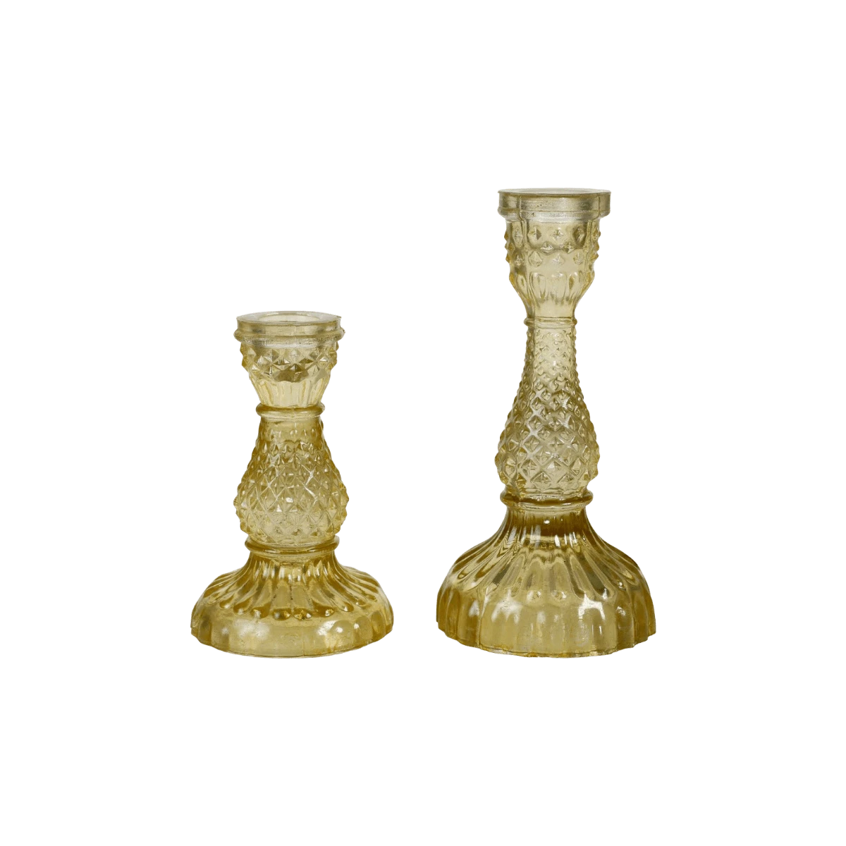 This stylish Mustard Yellow Glass Candlestick Holder Set is the perfect addition to your living room. Crafted from high borosilicate glass to create a perfect vintage look, these candle holders will have all guests turning their heads. Add a bit of beauty and creativity to your home – these candle holders make a unique and thoughtful gift!